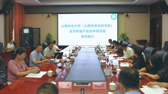 杨治平副院长就我院建设情况作详细汇报。她介绍,我院自成立以来,始终围绕生态环境与农业科技领域核心需求开展工作,聚焦耕地质量提升、养分资源管理、退化土壤改良、废弃物资源化利用四大核心领域,构建了覆盖多种农业与生态场景的实验示范基地,为科研开展提供坚实支撑。在盐碱地改良、矿区生态修复等重点领域取得多项省级科技奖项,拥有多项专利与标准,同时推进特色技术研发与应用,持续为地方农业发展与生态保护提供技术支撑。