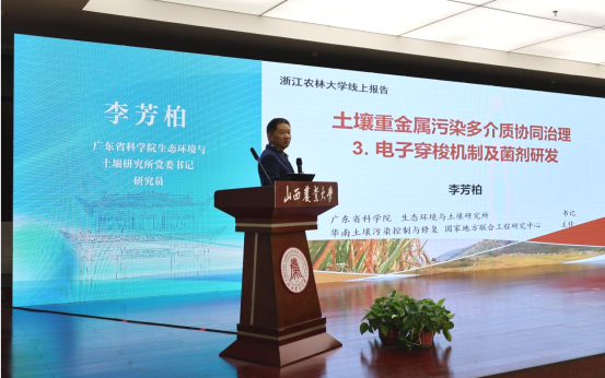 李芳柏研究员聚焦农用地重金属污染治理与粮食安全,他从铁循环的电子存储机制切入,解析了电子穿梭体的作用机理,提出通过内源激发微生物菌群活性、构建生物地质催化体系实现土壤自修复的创新思路。同时根据南方酸性土壤特点,结合修复工程实践,分享了铁碳材料应用、耐酸菌群与电子穿梭体协同修复等技术方案,为农用地重金属污染治理与土壤质量提升提供了高效可行的新路径。