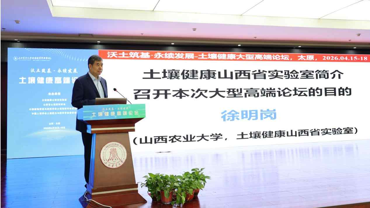 4月16日至17日,由土壤健康山西省实验室、山西省土壤肥料学会、中国植物营养与肥料学会耕地培肥专业委员会、中国土壤学会土壤肥力与肥料专业委员会共同主办的“沃土筑基·永续发展—土壤健康高端论坛”在山西农业大学龙城校区隆重举行。20位国内外相关领域顶尖专家齐聚我校,共享学术成果、共话前沿趋势、共促学科交流。中国工程院院士、土壤健康山西省实验室学术主任徐明岗,校党委副书记、校(院)长孔照胜出席开幕式。开幕式由土壤健康山西省实验室执行主任张强研究员主持。